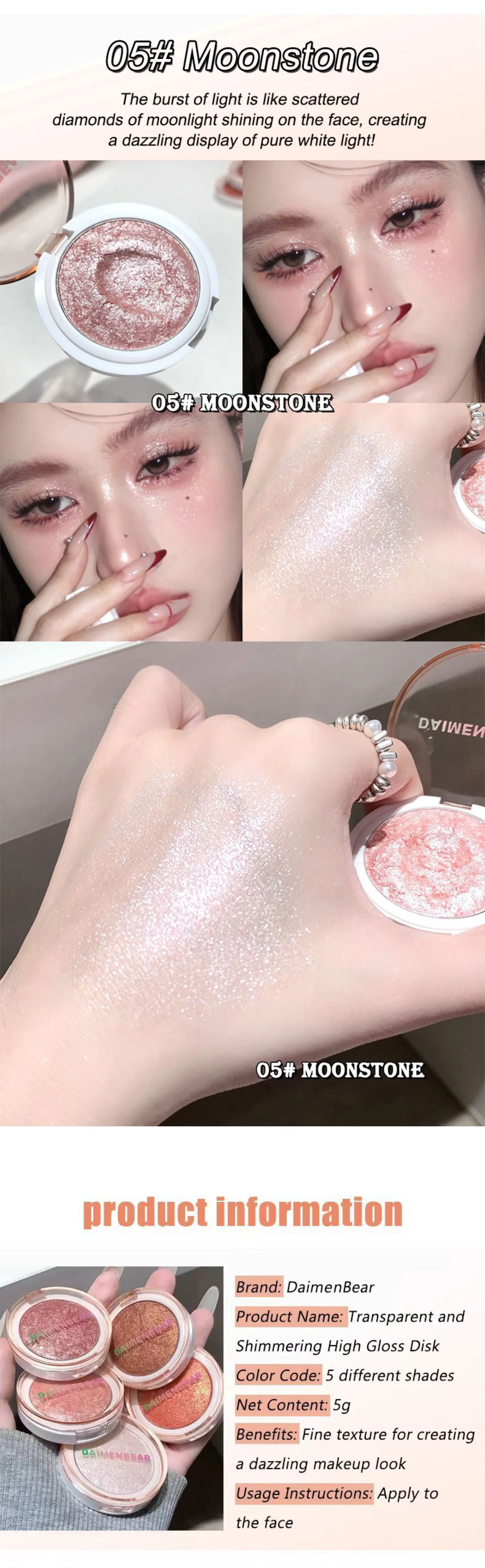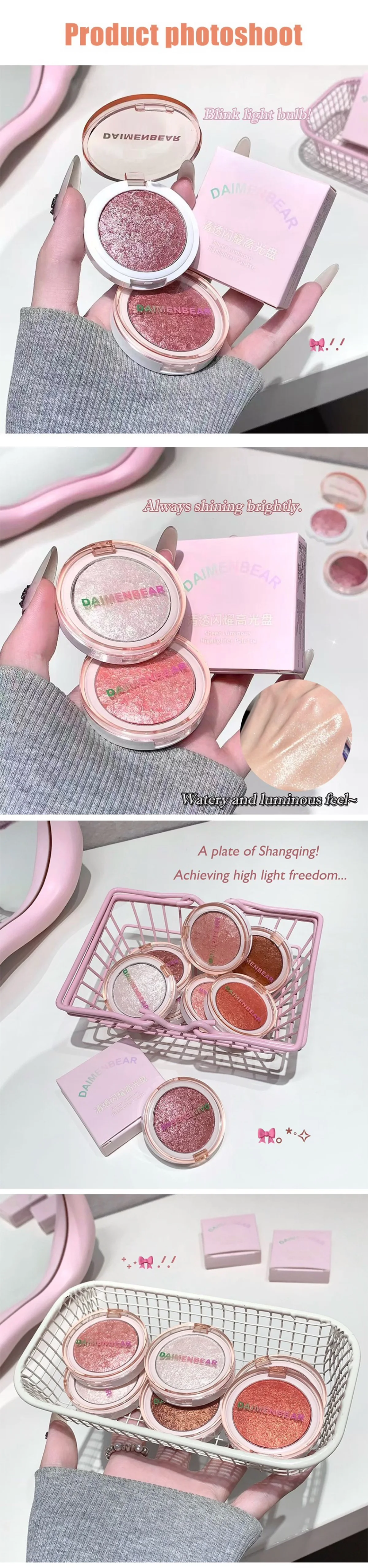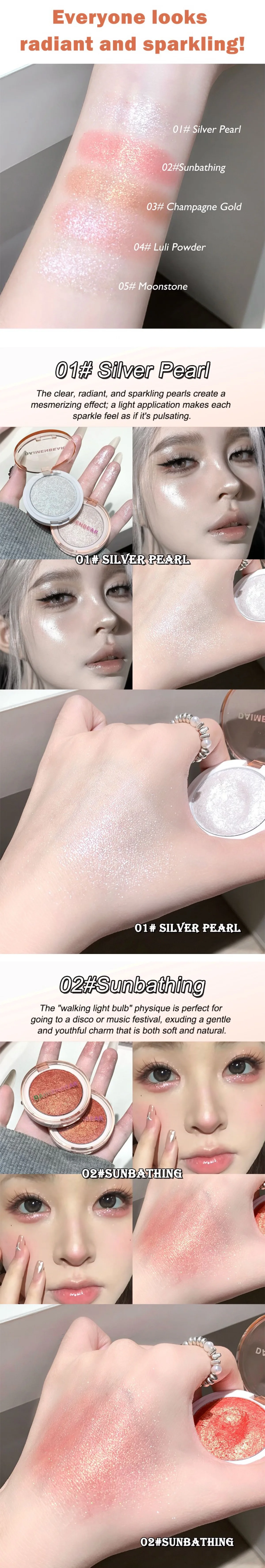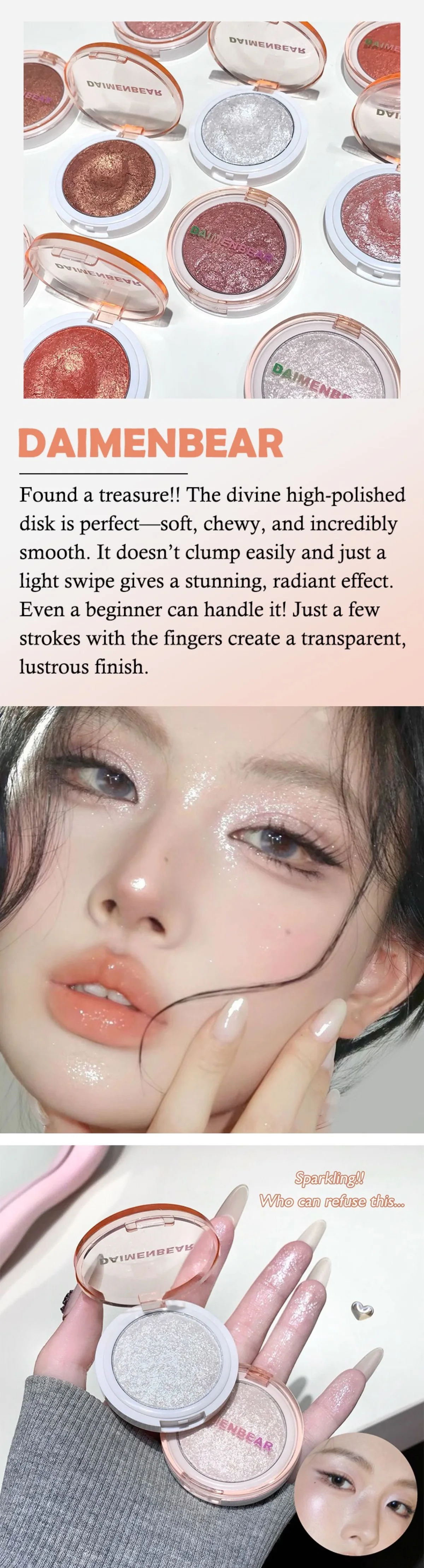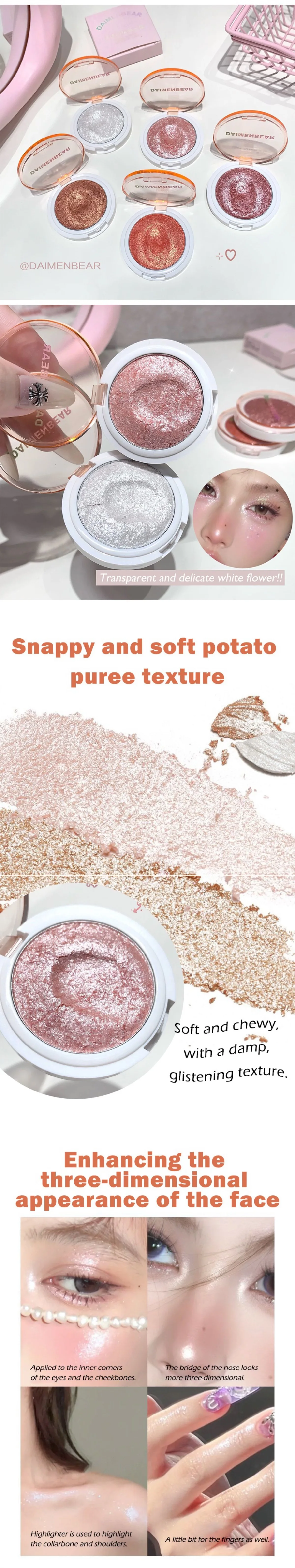 ✨ Mochi-Style Potato Puree Highlighter Cream Crystal-Clear Diamond-Shimmer Glitter Powder Explosive Glow 3D Face-Lifting Makeup Natural Dewy Glow